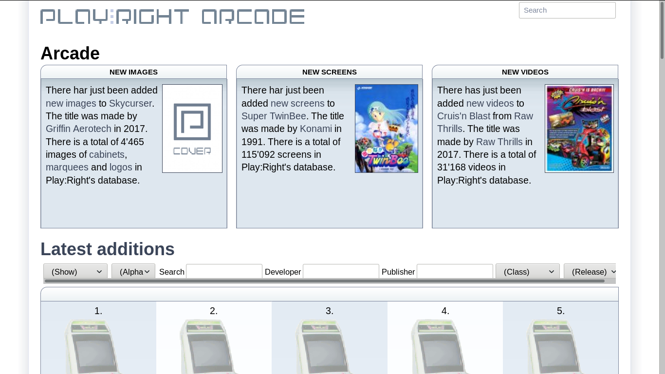 bezels, captures et vidéos de bornes d’arcade. La résolution et la qualité des images sont satisfaisantes. Il possible d’effectuer une recherche multi-critères dans la base de données.