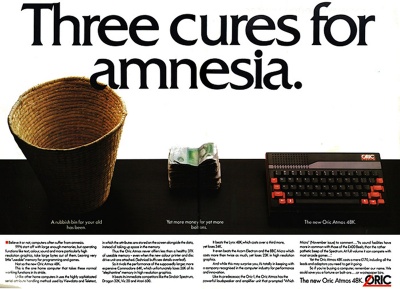 - — l’Oric 1 (1983 : premier modèle à la robe blanche et aux touches type «clavier de calculatrice», il était équipé de 16 Ko ou 48 Ko de RAM* et connu pour son manque de fiabilité dans la lecture des cassettes),