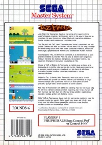 Accompagnez TAZ, le démon de Tazmanie, à la recherche de la plus grande omelette du monde. Rien ne peut le retenir bien longtemps lorsqu’il traverse les plateaux dangereux, les jungles hostiles, les cavernes étranges et les ruines croulantes de l’île. (Source : texte au verso de la jaquette.)