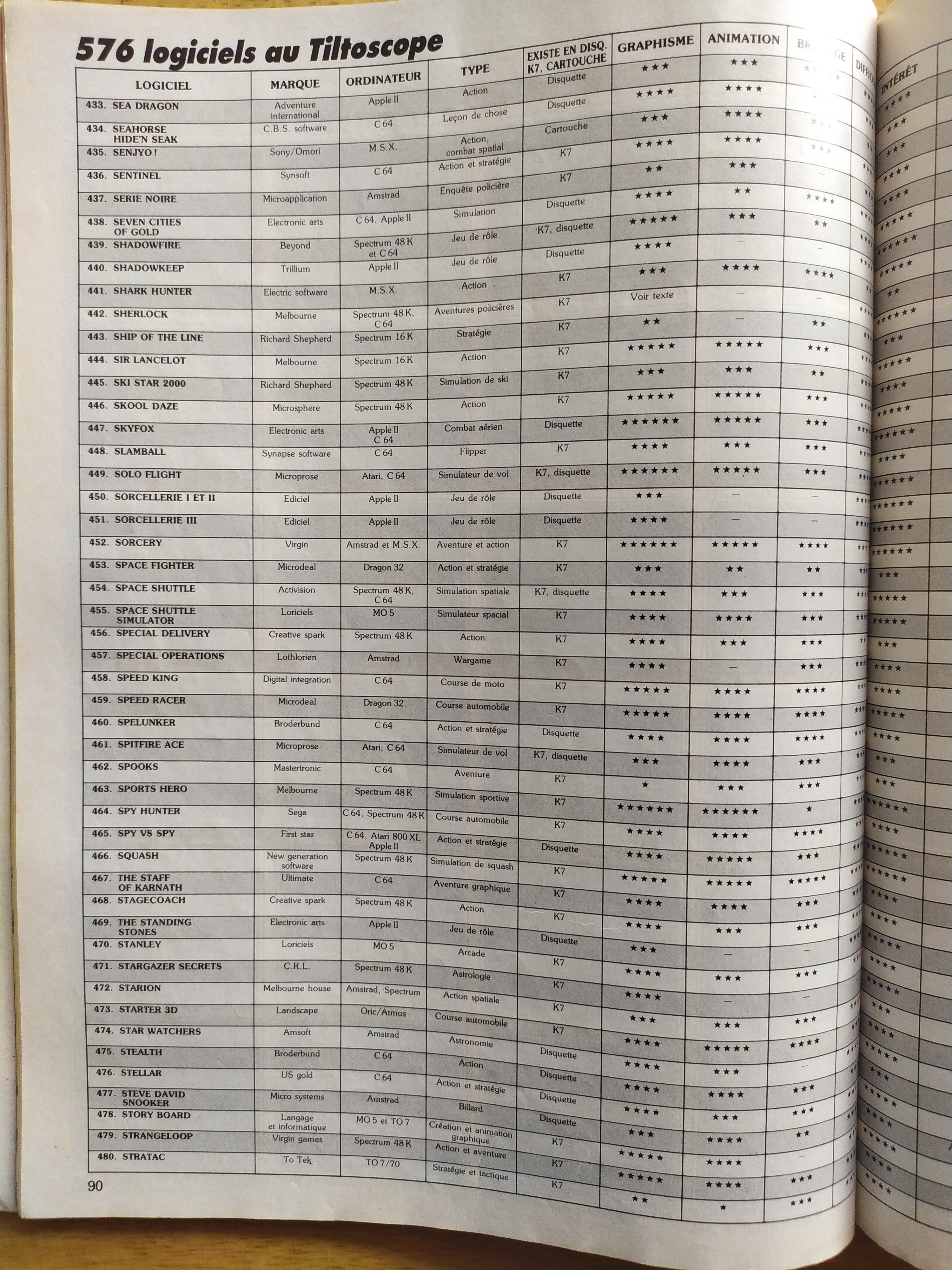 Le magazine Tilt, imprimé en couleurs, fut probablement le plus apprécié des joueurs des années 1980 en France, aux côtés de l’Hhhebdo. Plusieurs numéros sont disponibles : si nécessaire, nous contacter pour en obtenir la liste actualisée.