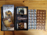 Contient : le livret de règles, le catalogue dépliant de l'éditeur, 110 cartes (10 cartes de héros, 32 cartes de défi, 20 cartes d'aventure, 48 cartes spéciales) et 40 pions imprimés sur carton fort à détacher (20 pions à 5 points et 20 pions à 1 point). Pour 2-4 joueurs.