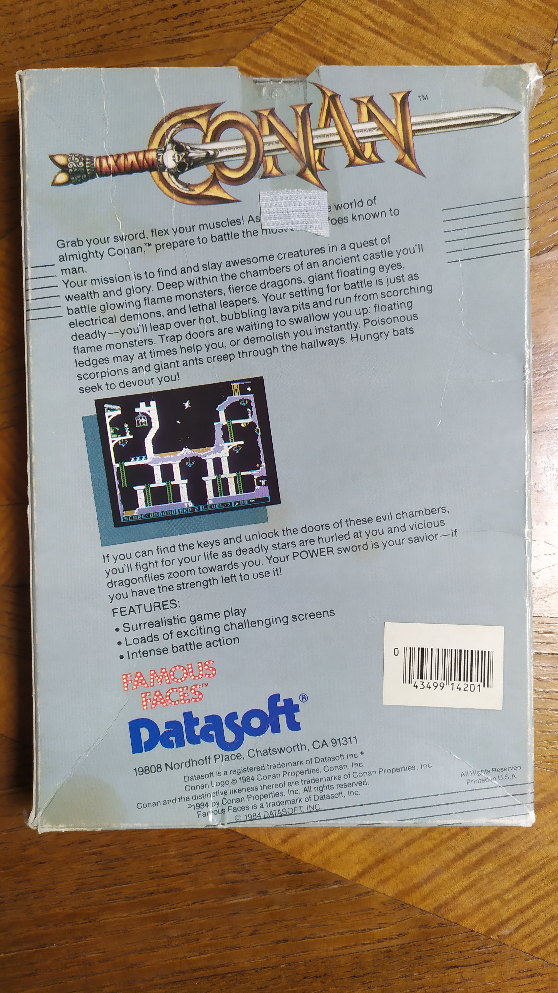 Développé sur Apple II, le jeu fut rapidement porté sur Commodore et Atari : les couleurs sur ces machines demeurent résolument proches de l’original (l’adaptation pour Commodore 64 est généralement jugée inférieure à la version originale et, disons-le, à celle pour Atari). Signe de sa popularité, Conan fut également adapté au Japon sur FM-7, PC-88 et Sharp X1. Et il fit l’objet d’une nouvelle parution pour Commodore, dans la collection budget Americana, cette fois en version cassette, en 1986.