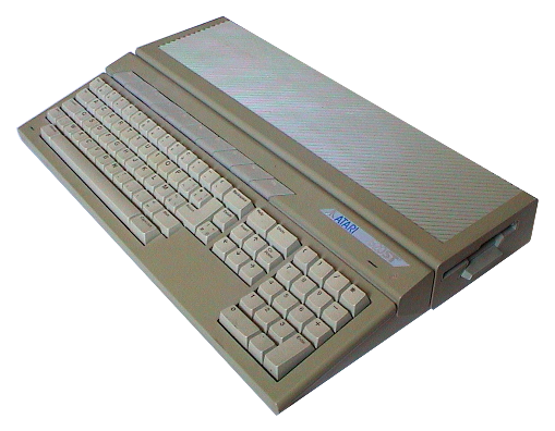 Ensemble reconditionné par nos soins comprenant un micro-ordinateur 16-32 bits Atari 520 STf francisé (clavier AZERTY) muni de 512 Ko de RAM, d’un lecteur de disquettes 3,5