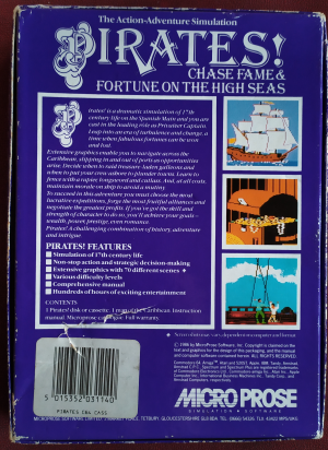 Avec le recul que confèrent plus de 20 années, il semble aujourd’hui que Pirates! soit le titre ultime, à la fois le plus accessible et le plus original, que Sid Meier ait conçu. Ce dernier, qui est aussi le créateur de Civilization (un autre jeu de simulation marquant de l’histoire) et de nombreux autres jeux du genre orientés simulation de guerre, en a fait lui-même un remake sorti en 2003. La version originale, en disquette pour Commodore 64, est cependant celle qui nous paraît offrir la difficulté la mieux dosée. Son intérêt inépuisable lui a valu d’être rapidement adaptée sur à peu près toutes les plate-formes de jeu disponibles vers la fin des années 1980 : Apple II (1987), compatibles PC (1987), Apple IIGS (1988), Macintosh (1988), Amstrad CPC (1988), Atari ST (1989), Amiga (1990), et même, Nintendo Entertainment System (1991). Il faut noter que les (rares) versions en cassette du jeu possèdent moins de graphismes.