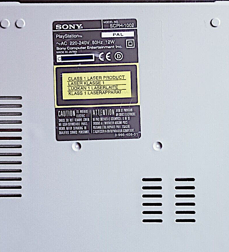 Le modèle d’une console PlayStation est indiqué à la fois sur sa boîte cartonnée et sous la console elle-même. Par exemple : SCPH-1002 (voir la photographie ci-dessous), SCPH-5502, SCPH-7500 ou encore SCPH-9001.